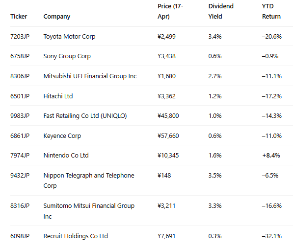 🔻 The average YTD return across all stocks in the Dividend Japan database is –3.8% (as of April 17, 2025).