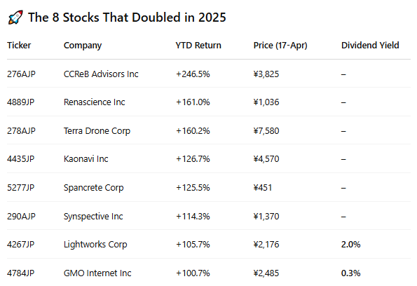 📈 8 Japanese Stocks That Doubled in 2025