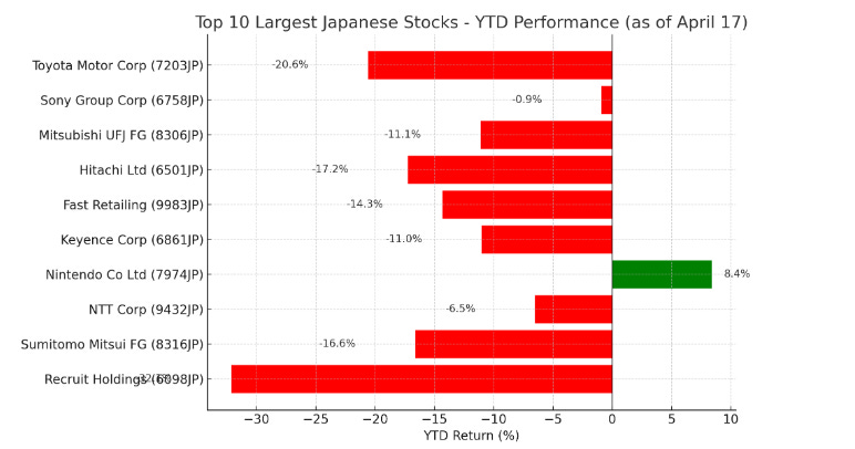 📉 Japan’s Largest Stocks Are Deep in the Red
