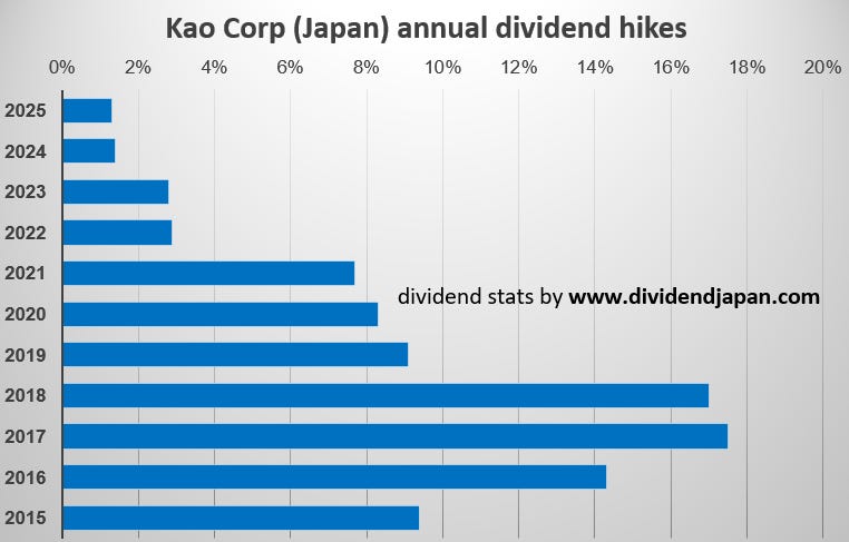 With now 35 consecutive years of dividend increases, Kao stands as one of Japan’s few true Dividend Aristocrats, earning its place alongside global consumer product giants.