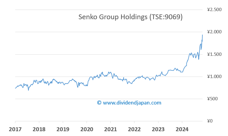 This week, Senko Group Holdings' stock reached an all-time high, surging 11% on Thursday to close at 1,940 yen. The sharp increase followed news that U.S.-based Dalton Investments acquired a 5% stake in the company, drawing significant market interest.