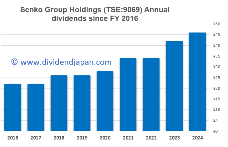 Annual dividend grew from ¥38.00 to ¥46.00, with a forecast of ¥50.00 next year